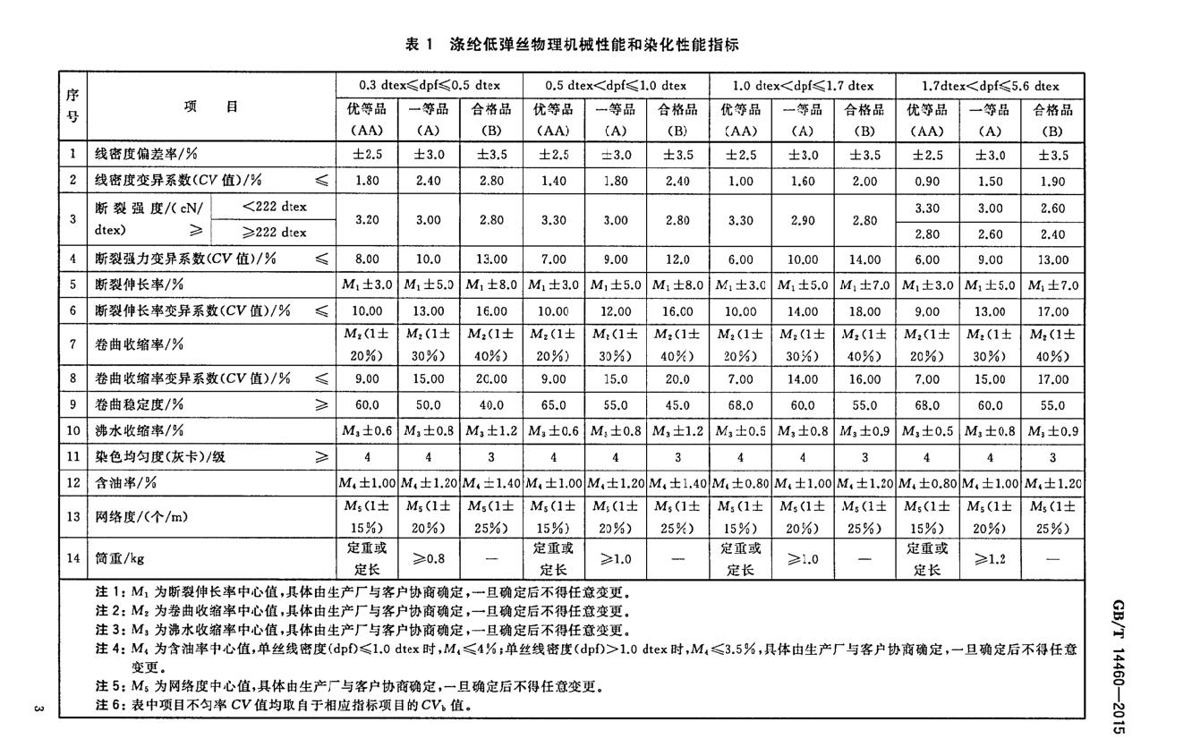 本標準適用于總線密度20 dtex~1000 dtex、單絲線密度0.3 dtex~5.6 dtex、圓形截面、半消光滌綸低彈絲,其他類型的滌綸低彈絲可參照使用。