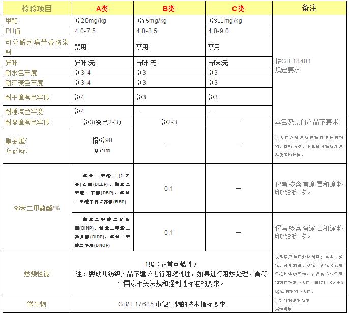 A、B、C類與GB 18401的安全技術(shù)類別一一對(duì)應(yīng)。