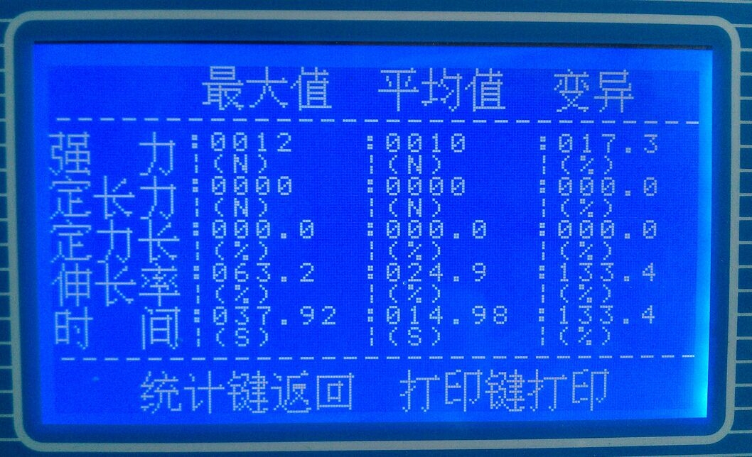 ,試樣斷裂后,儀器會自動復(fù)位到夾持位置,如此反復(fù),做完試驗后,按“統(tǒng)計”